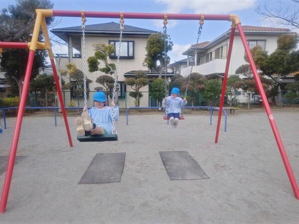 ブランコでは、落ちたりしないように先生が側にいましたが、乗り方を知っている子は得意げに「足はこうやって前後ろってやるんでしょう!」と言いながらやっていました🤭