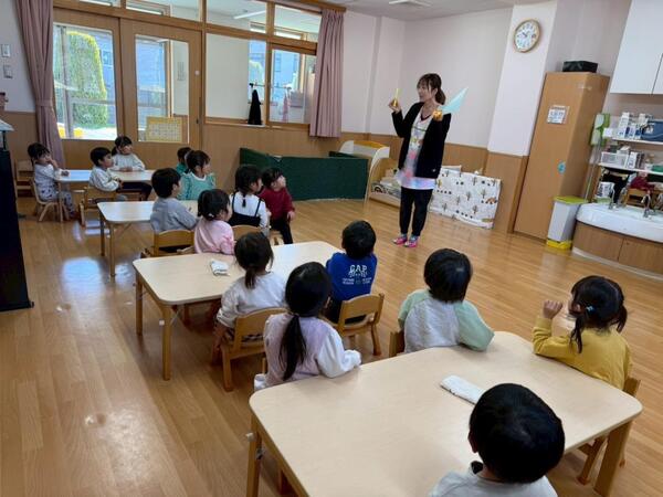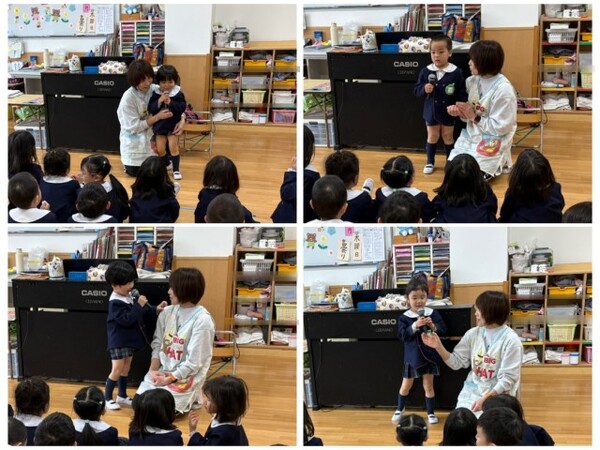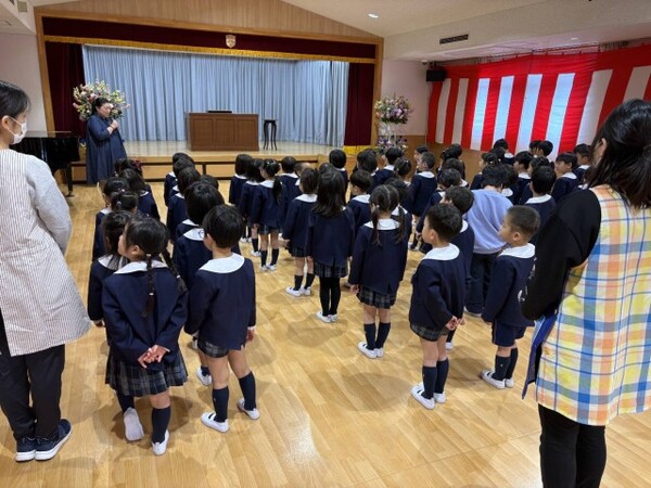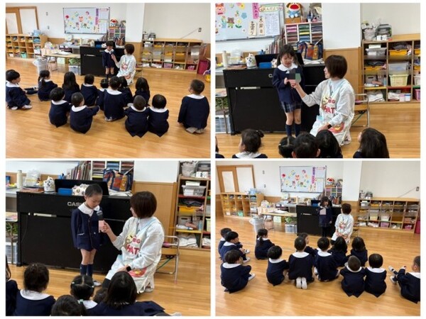 園長先生から、4月になったら年中さんになることや、春休みに怪我や病気をしないように、元気に過ごして下さいというお話をしていただきました🙂↕️背筋を伸ばして、真剣に聞いています✨