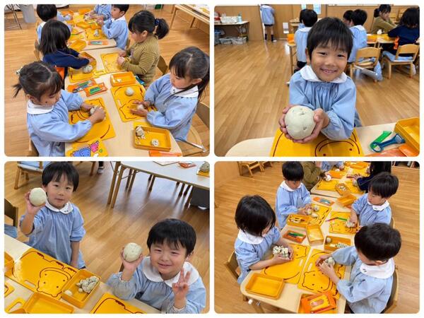 「こんなに小さくなったよ!」「見て見て!」と友だちと話しながら、最後の粘土の時間を楽しんでいました⭐️