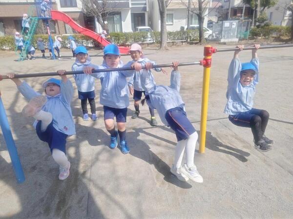そして鉄棒では出来るお友だちの姿に、「先生私もやりたい!」「僕もあれ出来るかな〜?」と言いながら挑戦している姿も☺️