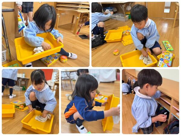 その後は、一年間使ってきたロッカーやお道具箱の中を自分たちで掃除しました✨物を一つひとつ取り出しながら、「ここもきれいにしよう」と丁寧に拭く姿に、この一年での成長を感じました🥹👏