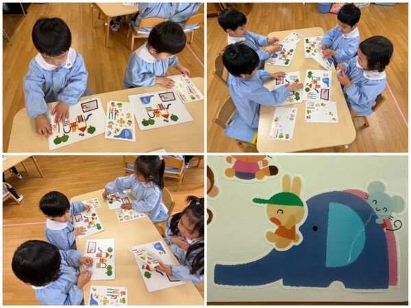 完成すると「みてー!できたよ!」と嬉しそうに見せてくれちり、「楽しかった!もっとやりたい!」と話す子どもたちの姿も見られました💕
