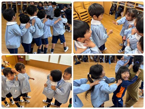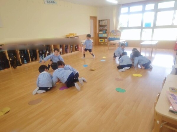 お片付けのあとは、みんなで「じゃんけん列車」をしました🚃じゃんけんに勝ったり負けたりしながら、どんどん長くなる列車に大盛り上がり‼️最後はとても長い列車になり、笑顔いっぱいの楽しい時間となりました😊