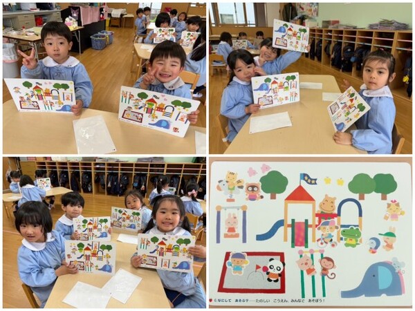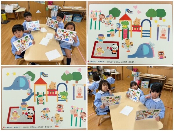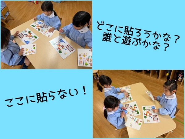 ただ、貼るだけでなく、何を持っているかな?どんな姿かな?何をしようとしているかな?…と、シールをよく見て、考えながら貼っていました🎶