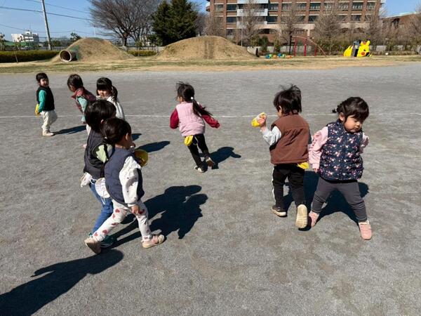 その後は園庭に出て、みんなでしっぽ取りをしました☺️