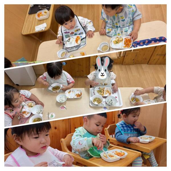 お給食も自分で食べる意欲が芽生え、スプーン使いも上手になってきました!