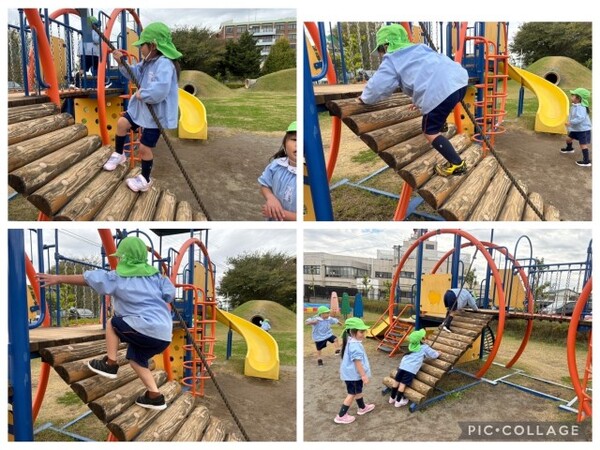難しい遊具も上手に登れるようになりました🙌
