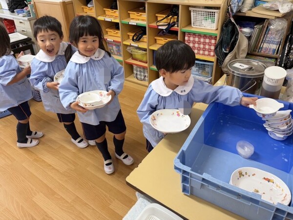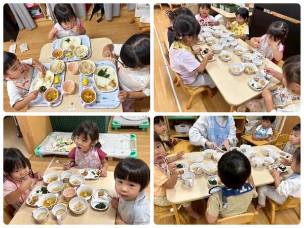 オペレッタの練習に、避難訓練。いっぱい身体を動かして遊んだ後は、みんなの大好きな給食の時間🍴