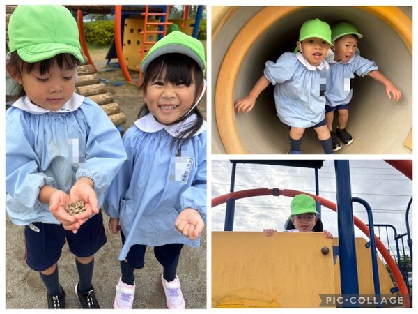 小石をたくさん拾ったり、トンネルからお友達と出てきたり😄