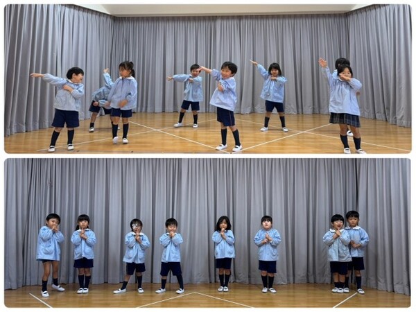 初日なので全員で2つの踊りに挑戦しました💃「本番、自分はどちらの発表に出るのかな?」とワクワクしているうさぎ組さんでした🐰
