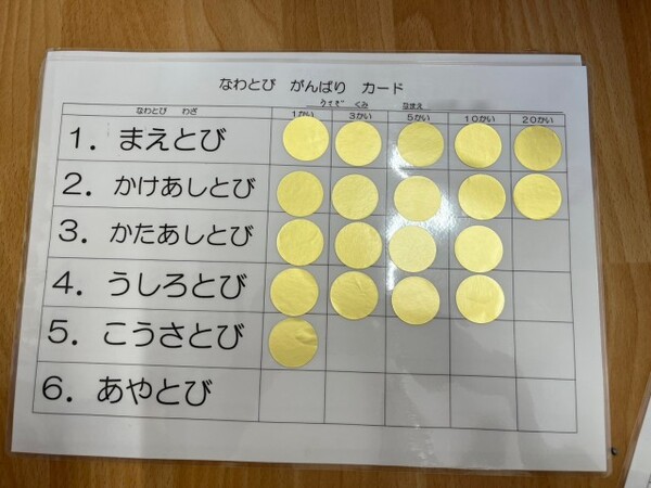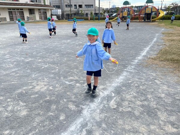 午後の戸外遊びの様子です🏃近頃外遊びで縄跳びを楽しんでいる年長さん💪なにかカードを持っていますね😳色々な種類の跳び方に挑戦し、跳べた回数によって金のシールがもらえます✨