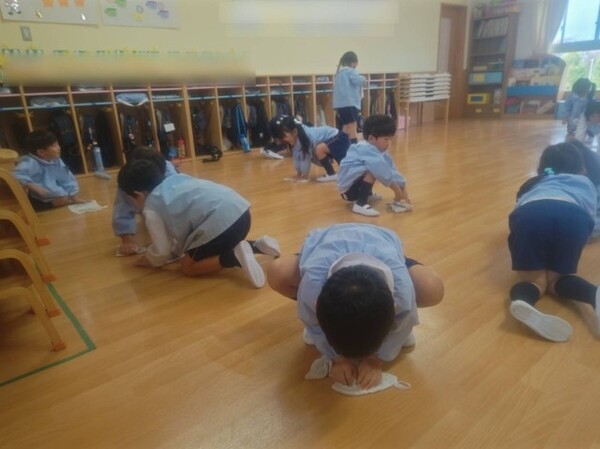 午後は外に行こうとしたら雨が降ってきてしまったので少し雨が止むまでお部屋のお掃除を皆でしました🧹