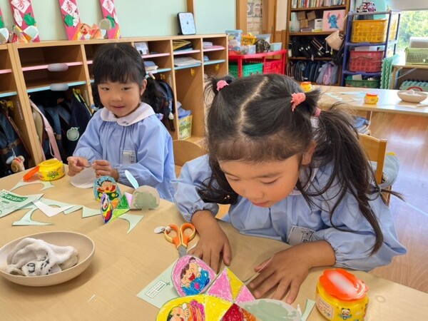 今日は、もう一つ活動を行いました⭐️以前色塗りを頑張った製作カードを組み立てます✂️まずはハサミで切っていきます👀折る線と切る線をよく見分けて丁寧に切っていますね✨